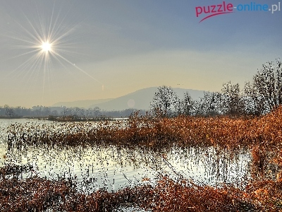 Puzzle Słońce, Jesienne, Jezioro, Trzciny