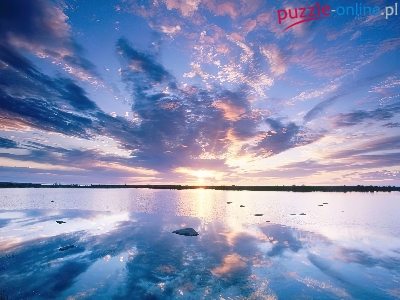 Puzzle Słońce, Niebo, Jezioro, Chmury