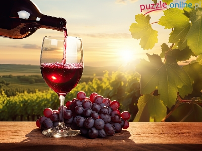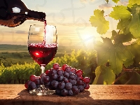 Liście, Wino, Kieliszek, Grafika AI, Winogrona, Czerwone, Słońce