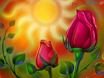 Puzzle Róże, Słońce, Pąki