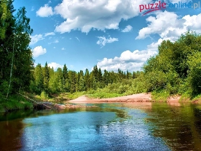 Puzzle Słoneczna, Jezioro, Drzewa, Pogoda