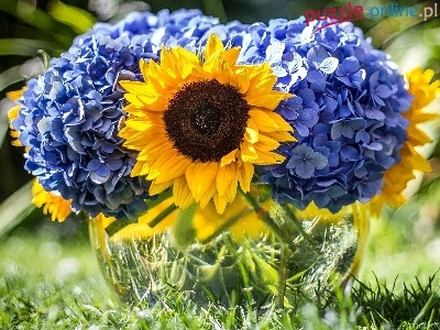 Puzzle Słonecznik, Bukiet, Kwiatów, Hortensje