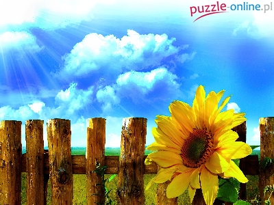 Puzzle Płot, Słonecznik, Niebo