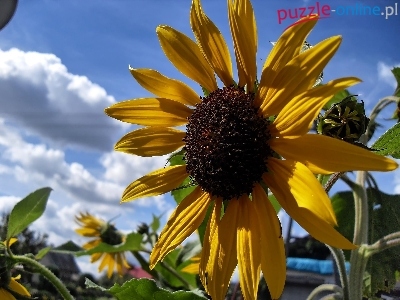 Słonecznik, Ogród, Chmury, Lato, Roślina, Niebo