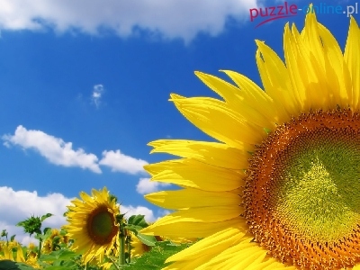 Puzzle Błękitne, Słoneczniki, Niebo