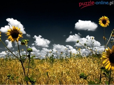 Puzzle Łąka, Kwiaty, Słoneczniki, Chmury
