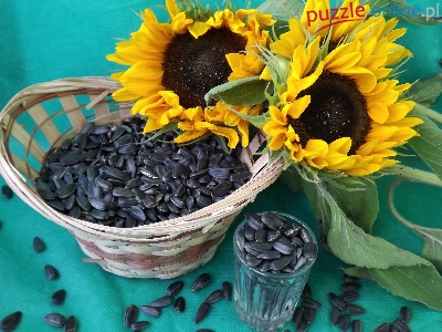 Puzzle Sloneczniki, Kwiaty, Nasiona, Bukiet
