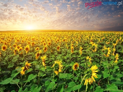 Puzzle Słoneczniki, Zachód, Słońca, Pola