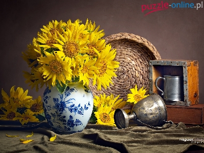 Puchar, Kwiaty, Żółte, Słoneczniki, Kompozycja, Wazon