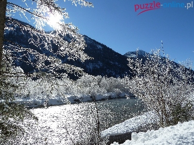 Słoneczny, Rzeka, Mróz, Austria, Śnieg, Poranek