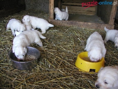 Puzzle Słowackie czuwacze, szczeniaki, miski