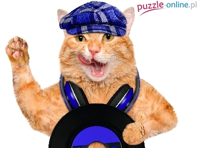 Puzzle Słuchawki, Kot, Czapka, Płyta