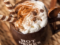 Kubek, Łyżeczka, Bita śmietana, Deser, Cynamon