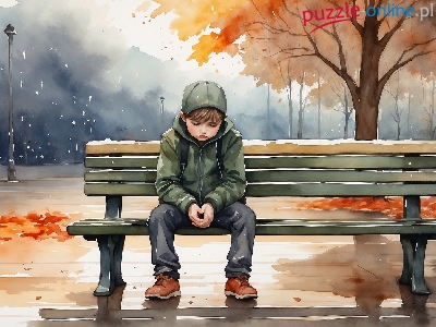 Dzieci, Smutny, Chłopc, Park, Ławka