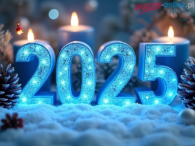 Szyszki, Niebieskie, 2025, Grafika, Nowy Rok, Cyfry, Åšnieg