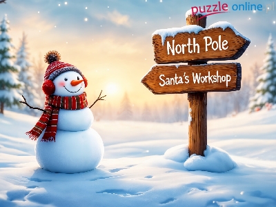Puzzle Drogowskaz, Zima, Bałwanek, Śnieg