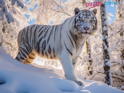 Biały, Zima, Drzewa, Śnieg, Ośnieżone, Las, Tygrys