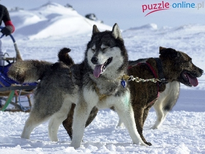 Puzzle śnieg, Siberian Husky, sanie