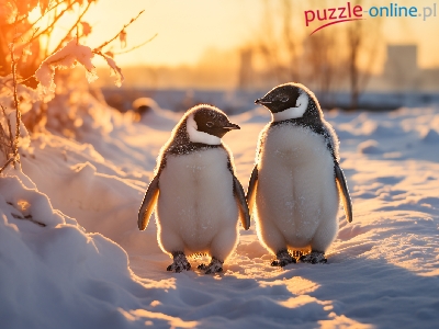 Puzzle Pingwiny, Zima, Dwa, Åšnieg