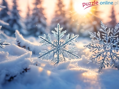 Trzy, Śnieg, Śnieżynki, Grafika, Słońce