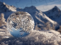Góry, Kula, Szklana, Śnieg, Grafika AI, Zima