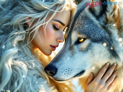 Puzzle Wilk, Kobieta, Blondynka, Åšnieg