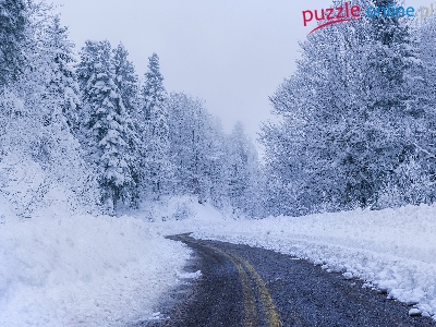 Drzewa, Droga, Zima, Śnieg, Las, Zaśnieżone
