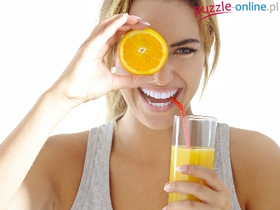 Puzzle Sok, Blondynka, Uśmiechnięta, Pomarańczowy