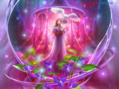 Puzzle Sowa, Kobieta, Biała, Kwiaty