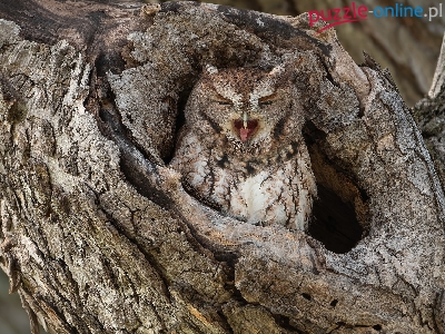 Ptak, Syczoń krzykliwy, Sowa, Dziupla, Drzewo