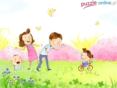 Puzzle Spacer, Rodzinka, Łąka, Rower