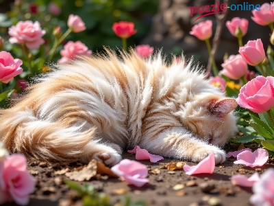Kot, Śpiący, Puszysty, Tulipany, Kwiaty