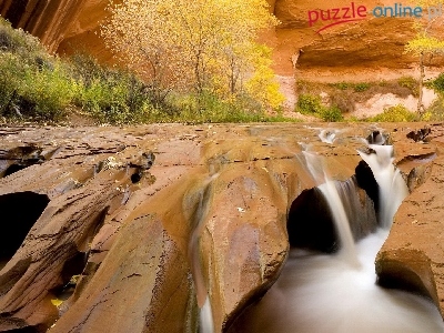 Puzzle Spływająca, Drzewa, Skały, Woda