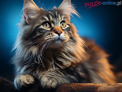 Puzzle Długowłosy, Puszysty, Kot, Spojrzenie