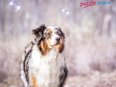 Puzzle Spojrzenie, Owczarek australijski, Australian shepherd, Bańki