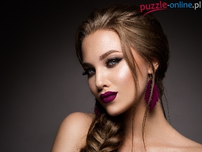 Spojrzenie, Kolczyki, Kobieta, Warkocz, Makijaż
