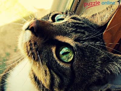 Spojrzenie, Kot, Oczy, Zielone, Biały