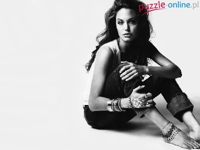 Puzzle srebro, Angelina Jolie, jeansy