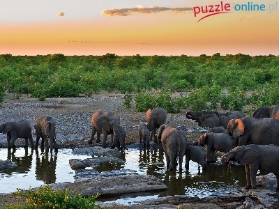 Puzzle Słoni, Stado, Woda
