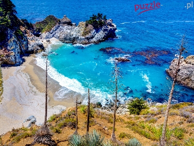 Stan Kalifornia, Morze, Zatoka, Wodospad McWay Falls, Stany Zjednoczone, Park stanowy Julii Pfeiffer Burns, Skały