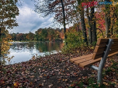 Stan Connecticut, Liście, Drzewa, Miasto Trumbull, Jezioro, Stany Zjednoczone, Park Twin Brooks, Ławka