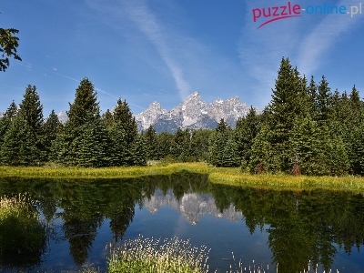 Stan Wyoming, Drzewa, Odbicie, Rzeka Snake River, Stany Zjednoczone, Park Narodowy Grand Teton, Góry Teton Range