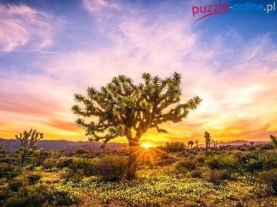 Stan Kalifornia, Drzewo Jozuego, Wschód słońca, Jukki krótkolistne, Stany Zjednoczone, Park Narodowy Joshua Tree, Roślinność
