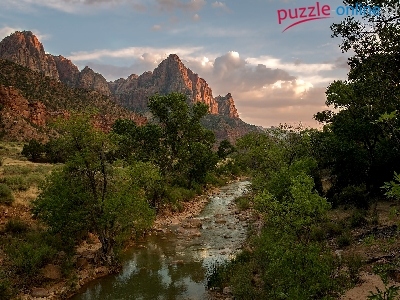 Stan Utah, Góry Watchman, Drzewa, Park Narodowy Zion, Rzeka Virgin River, Stany Zjednoczone