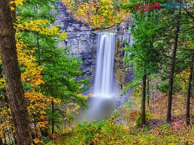 Stan Nowy Jork, Taughannock Falls, Wodospad, Skały, Stany Zjednoczone, Drzewa