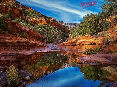 Stan Arizona, Rzeka, Drzewa, Kanion, Stany Zjednoczone, Park stanowy Slide Rock, Skały