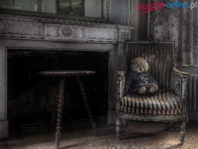 Stary, Pokój, Miś, Opuszczony, Kominek, Fotel