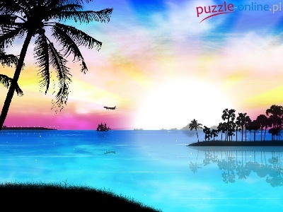 Puzzle Statek, Krajobraz, Morze, Palmy
