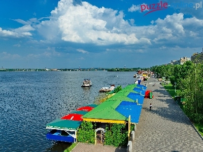 Statki, Namioty, Donieck, Rzeka, Aleja, Niebo