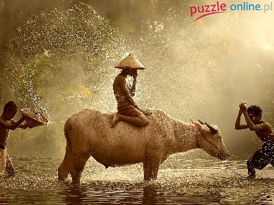 Puzzle Staw, Dzieci, Bawół, Zabawa